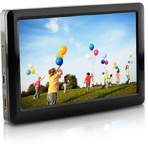-HDMI out to tv; works very good, 720p looked better than 1080p in my opinion. I've seen quite a few of these devices that play "out to tv", none of them compare to HD DVD/BR players, but the ability to be able to play something from the player on the fly to a bigger display is a great feature that this player can do. The picture from this player is better than my kyros when i tested both on my tv's. I use this player when working, in workshop or kitchen far away from my entertainment system.